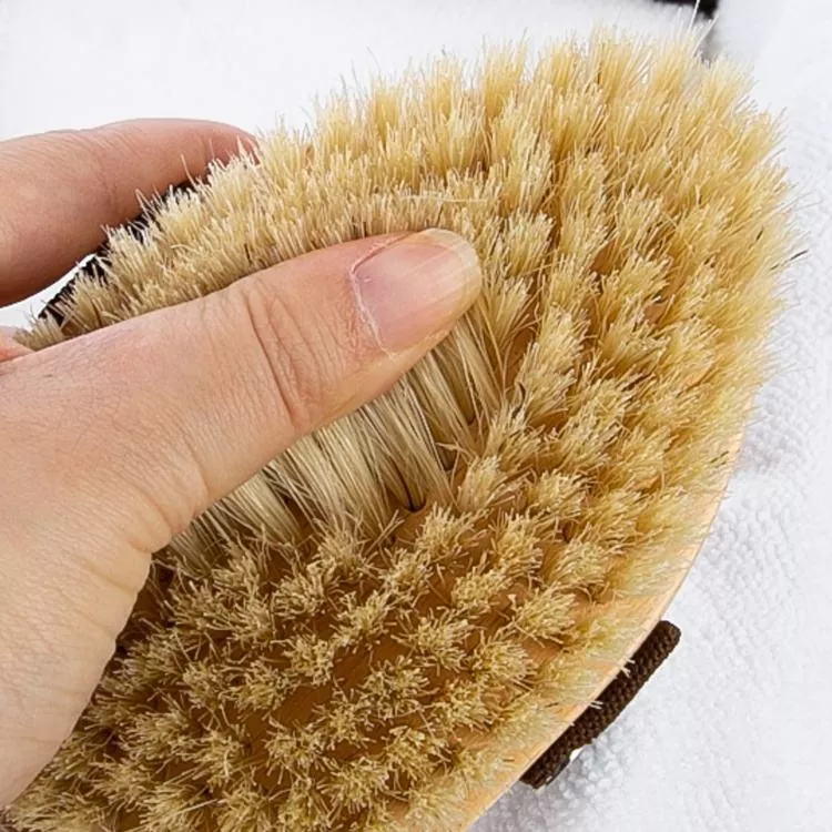 Ова четка за купање за купање израђена за дубоко чишћење и глатку кожу. Издржљива беецхвоод ручка нуди чврст, неклизну стиску, чак и када је мокро, док природне чекиње вепра (мекане ипак фирме) њежно провлачи мртву кожу, унчати поре и повећати циркулацију.