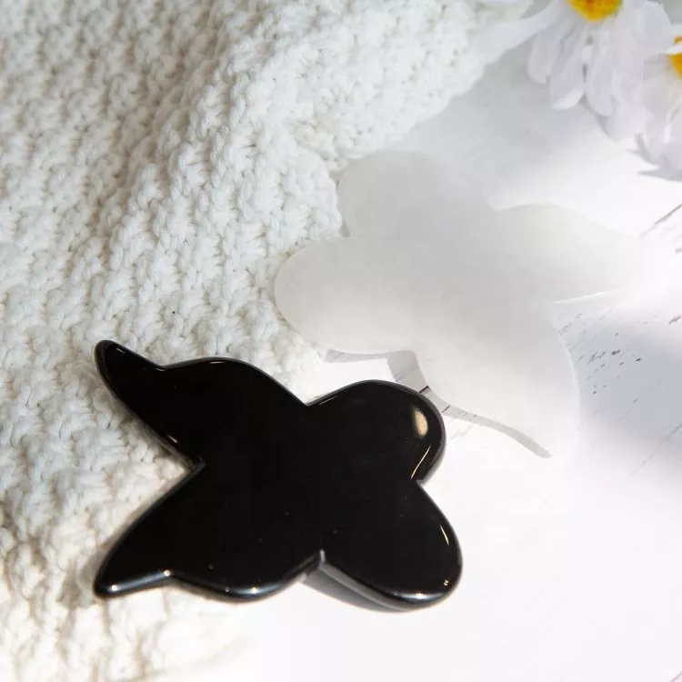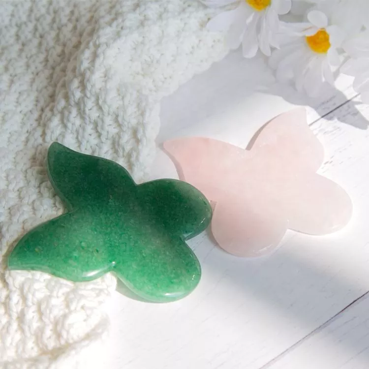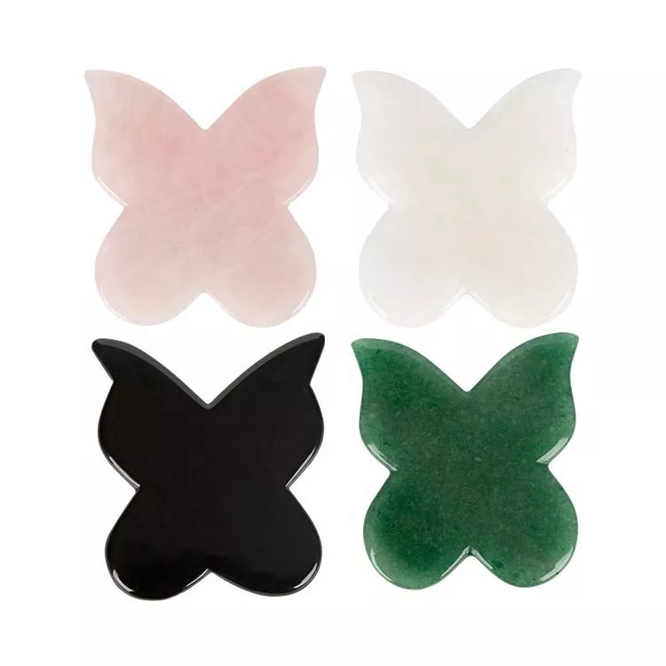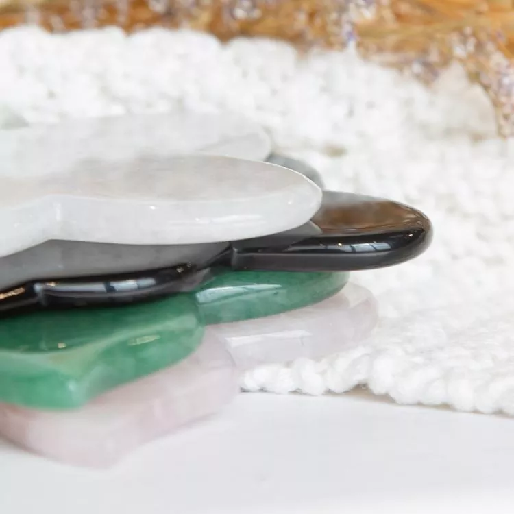 Израђен од 100% природних жада, ваљак има велику главу од 30 мм за образе / чело и 15 мм мале главе за очи / нос. Алат ГУА СХА има 4 закривљене ивице: један за вилину, два за образе, један за храмове. Обоје остају цоол да бисте смањили надутост и смирену иритацију.